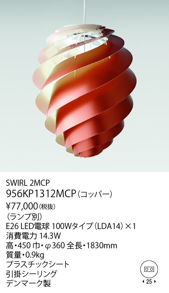 956KP1312MCP / KP1312MCP 北欧照明レ・クリント スワール2M ペンダントライト / コッパー