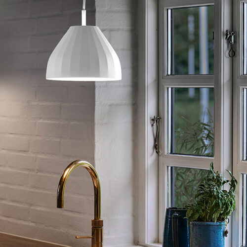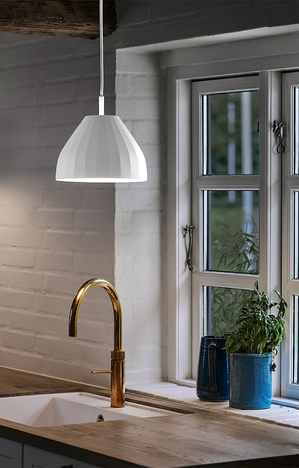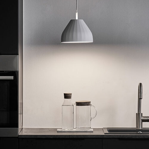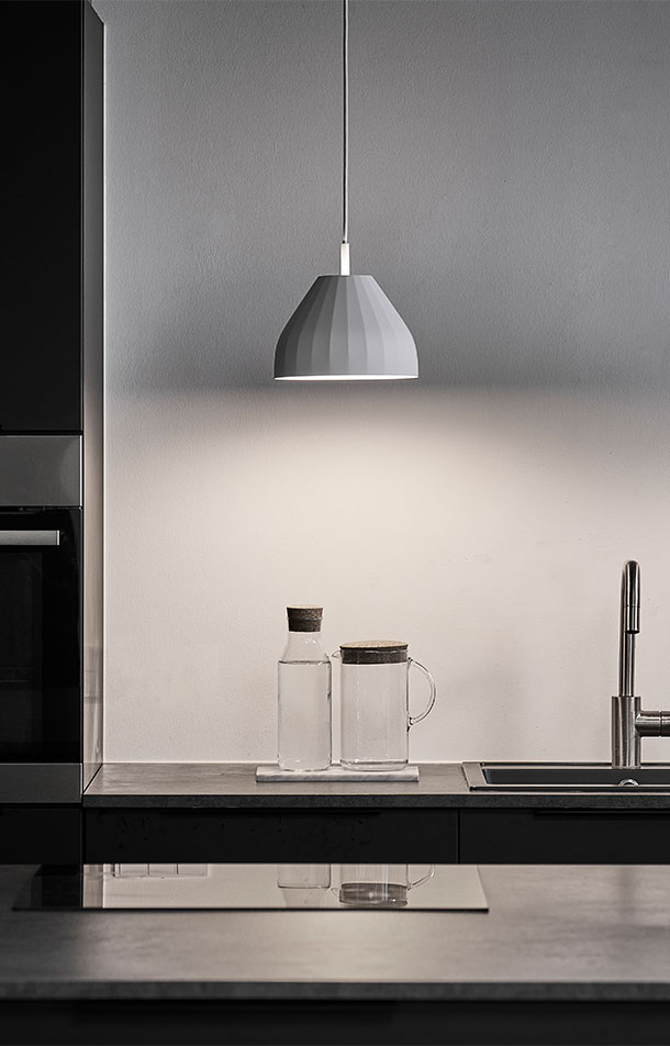 メタル製でありながらレ・クリントの象徴的なプリーツを連想させるデザインを追求して誕生したファセット。上下2方向に配光する円錐形の形状は、シンプルかつ象徴的で、ダイニングテーブルやキッチンテーブルの上などさまざまなシーンでお使いいただけます。