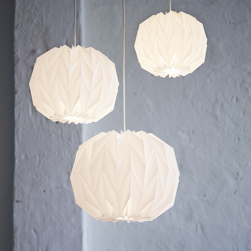 1901年、デンマークの建築家P.V.イェンセン・クリントが、船乗りだった友人を通して知った日本の折り紙に影響を受け、一枚のシートからオイルランプ用のシェードを折り上げたのが始まりです。