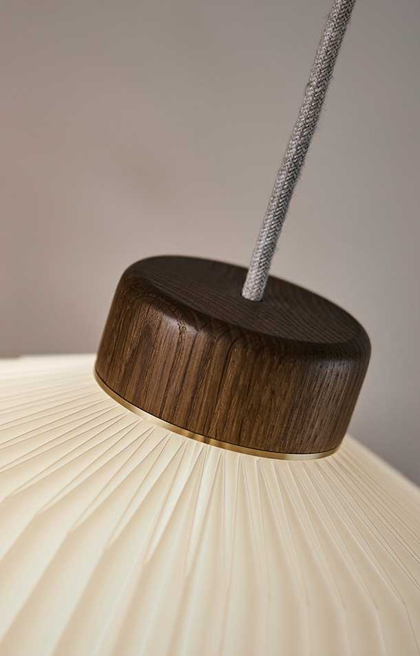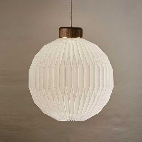 球体の上下左右どの角度から見ても完璧な美しさであるよう計算し尽くされたシェードは、上部のディテールがデザインのアクセントとなって空間に柔らかく温かな光をもたらします。