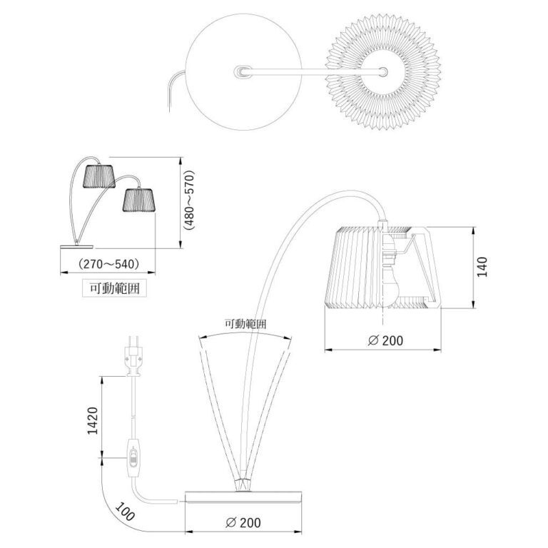 | 説明文 | サイズ:W270-540mm / H480-570mm(アーム可動) 重さ:約3kg 材質(シェード):難燃性PE樹脂またはペーパー 対応シェード120S 原産国:デンマーク |