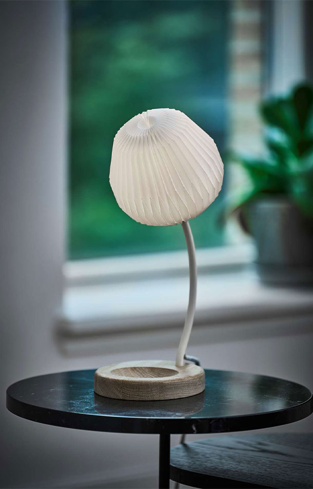 シェードは光源が密閉されているため、眩しさを感じさせない心地よいあかりで、さまざまな場所やシーンでお使いいただけます。ふんわりとした明るさで、空間にやわらかな雰囲気を演出してくれるでしょう。