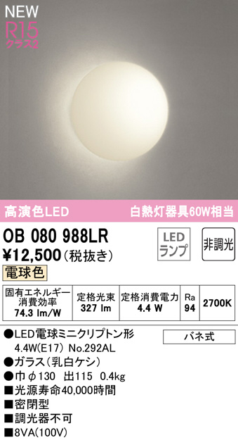 OB080988LR オーデリック LEDブラケット ランプ別梱包 (代引き不可)