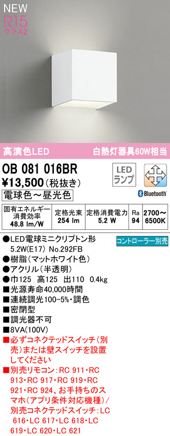 OB081016BR オーデリック LEDブラケット ランプ別梱包 (代引き不可)