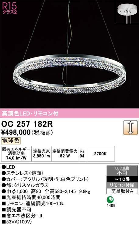 OC257182R オーデリック LEDシャンデリア(2梱包) 〜10畳 (代引き不可)