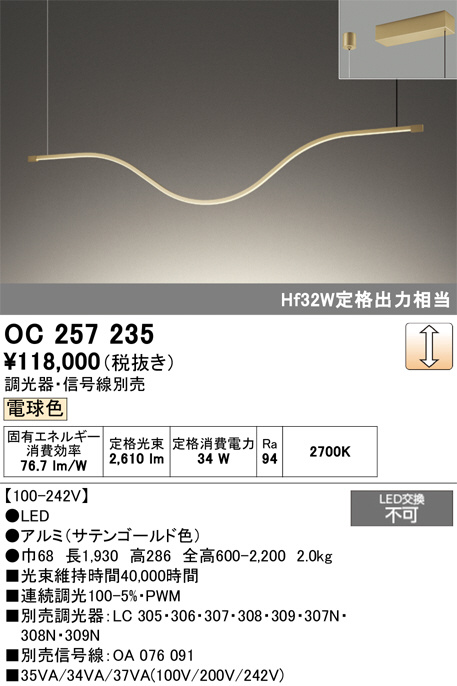 OC257235 オーデリック LEDシャンデリア 調光器・信号線別売 (代引き不可)