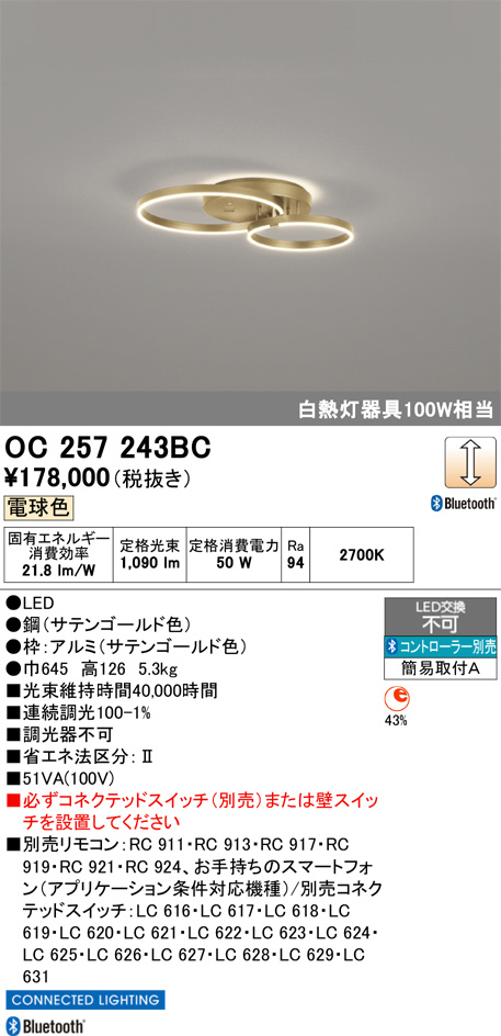 OC257243BC オーデリック LEDシャンデリア (代引き不可)