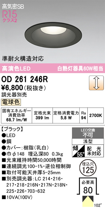OD261246R オーデリック LEDダウンライト 調光器別売 (代引き不可)