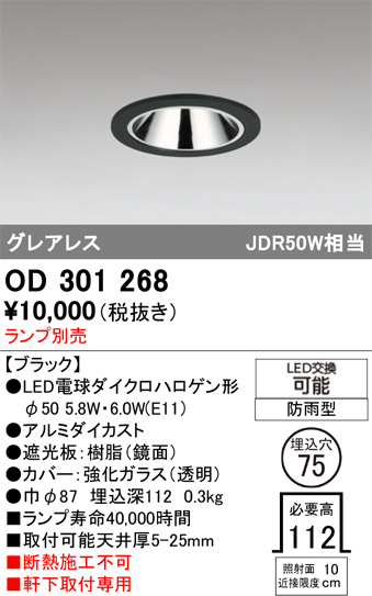 OD301268 オーデリック LEDダウンライト ランプ別売 (代引き不可)