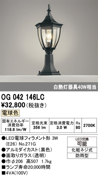 OG042146LC オーデリック LEDエクステリアライト ランプ別梱包 (代引き不可)