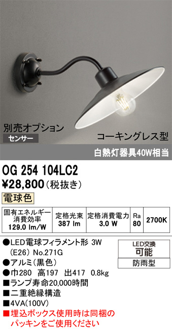OG254104LC2 オーデリック LEDポーチライト ランプ別梱包 (代引き不可)
