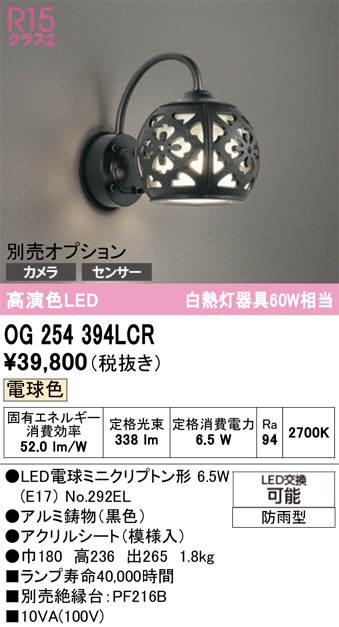 OG254394LCR オーデリック LEDエクステリアライト ランプ別梱包 (代引き不可)
