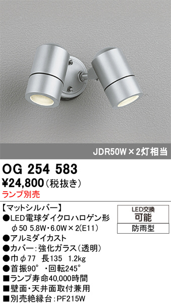 OG254583 オーデリック LEDアウトドアスポットライト ランプ別売 (代引き不可)