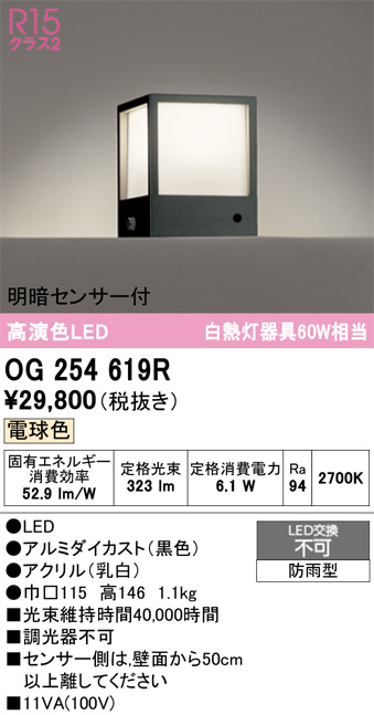 OG254619R オーデリック LED門柱灯 (代引き不可)