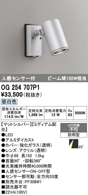 OG254707P1 オーデリック 防雨型LEDスポット (代引き不可)