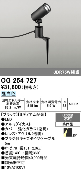 OG254727 オーデリック LEDアウトドアスポットライト (代引き不可)