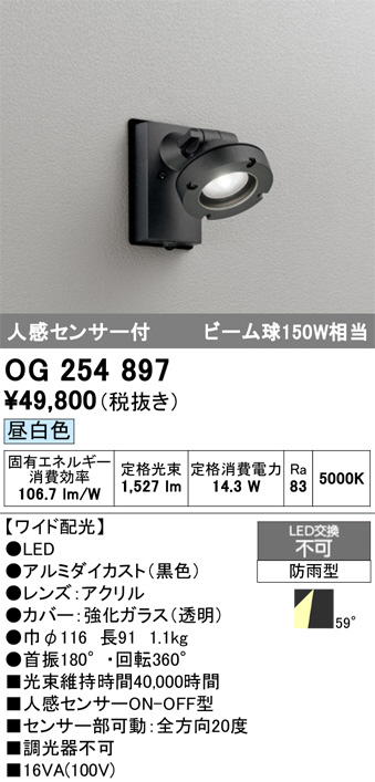 OG254897 オーデリック 防雨型LEDスポット (代引き不可)