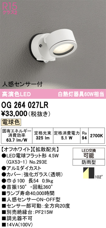 OG264027LR オーデリック LEDエクステリアライト ランプ別梱包 (代引き不可)
