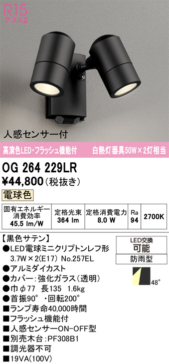 OG264229LR オーデリック LEDエクステリアライト ランプ別梱包 (代引き不可)