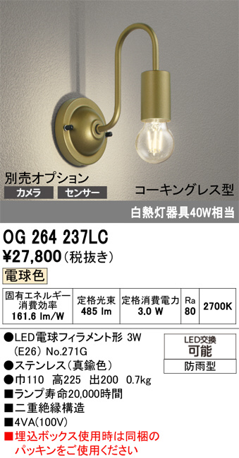 OG264237LC オーデリック LEDポーチライト ランプ別梱包 (代引き不可)