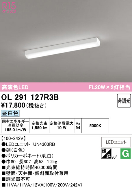 OL291127R3B オーデリック LEDキッチンライト LED光源ユニット別梱 (代引き不可)