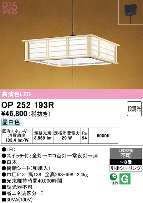 OP252193R オーデリック LEDペンダント 〜8畳 (代引き不可)
