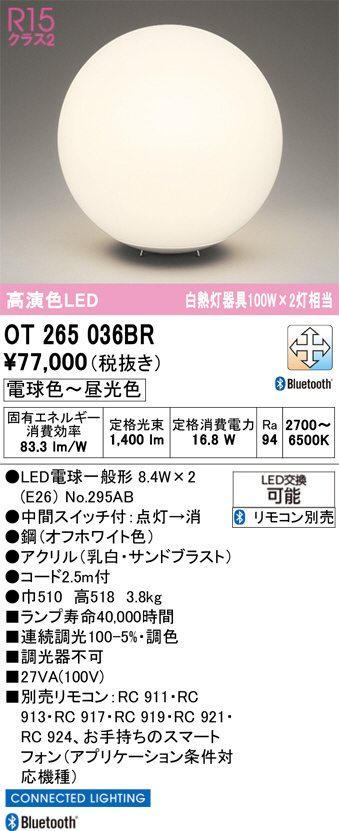 OT265036BR オーデリック LEDスタンド ランプ別梱包 (代引き不可)
