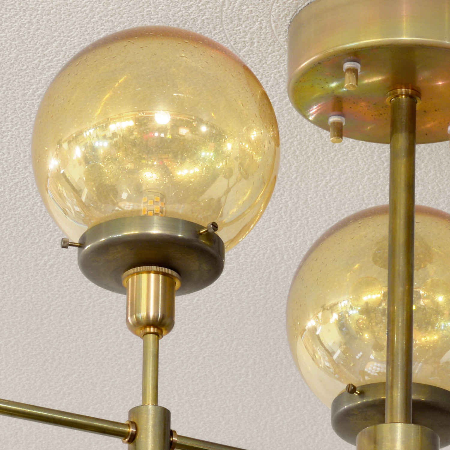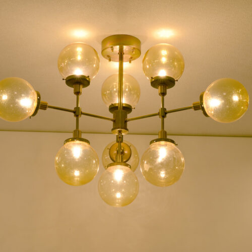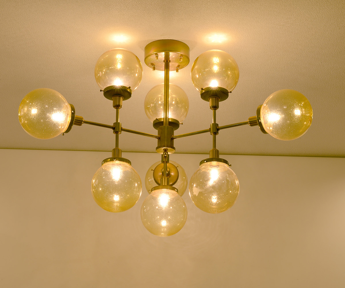 インダストリアルライト 真鍮生地9灯シーリングライト SSL009GA アンバー色ガラス