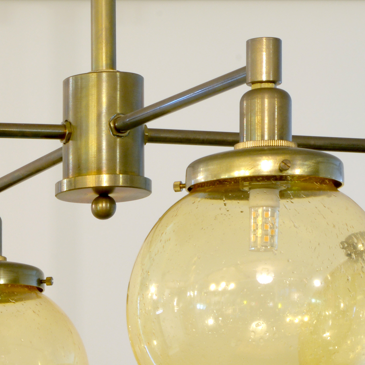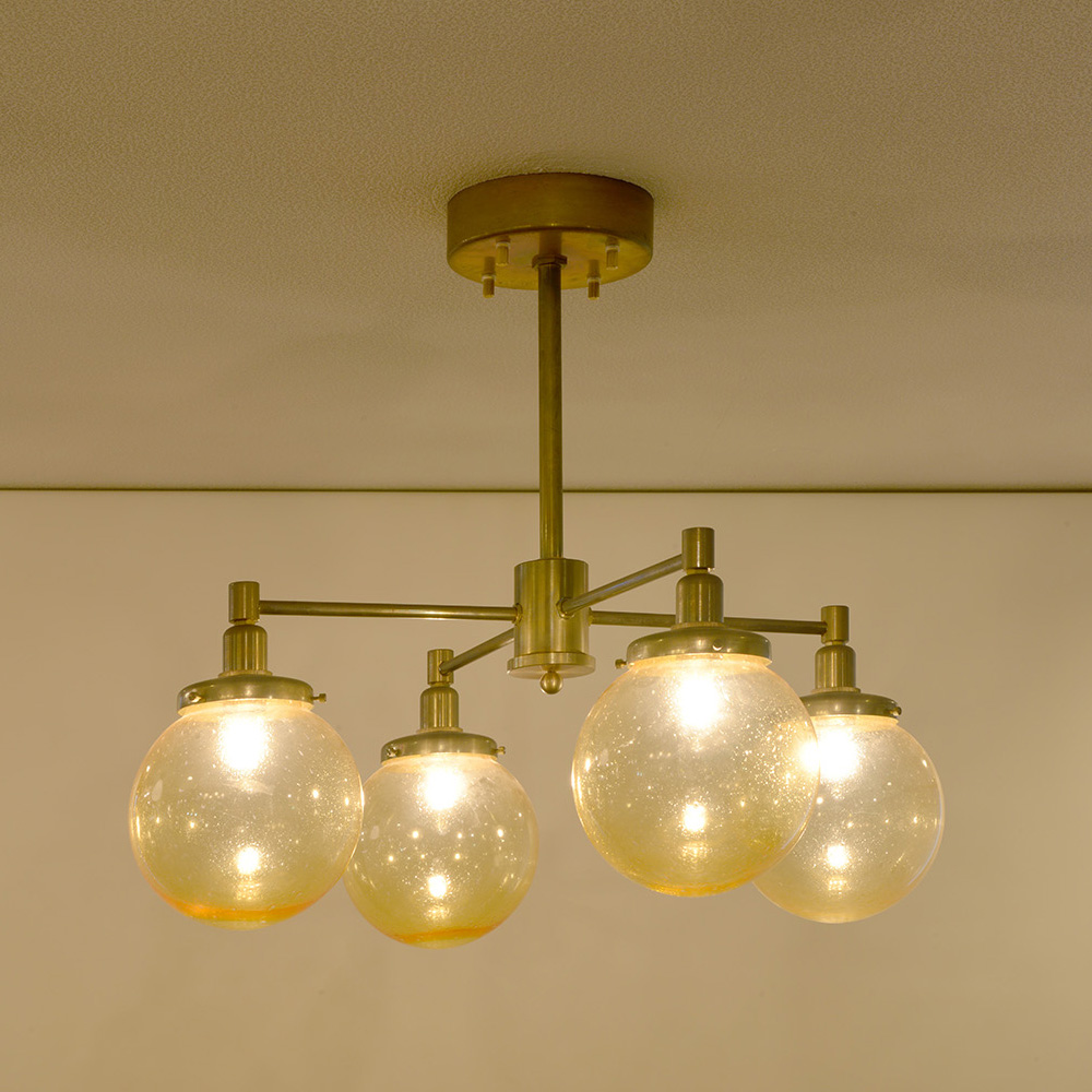 インダストリアルライト 真鍮生地4灯ペンダントライト SSL104GA アンバー色ガラス