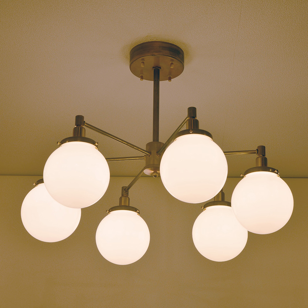 インダストリアルライト 真鍮生地6灯シーリングライト SSL106GW 乳白ガラス