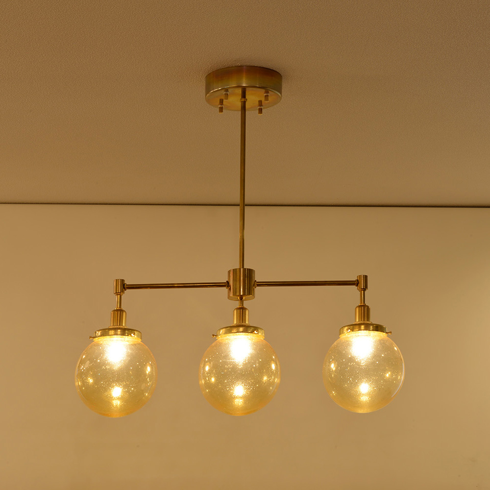インダストリアルライト 真鍮生地3灯ペンダントライト SSL203GA アンバー色ガラス