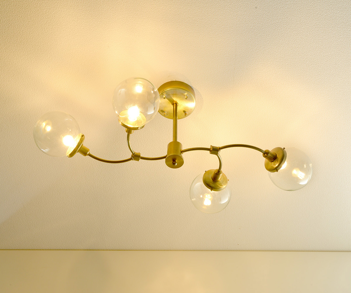 インダストリアルライト 真鍮生地4灯シーリングライト SSL400MHSGC クリアガラス