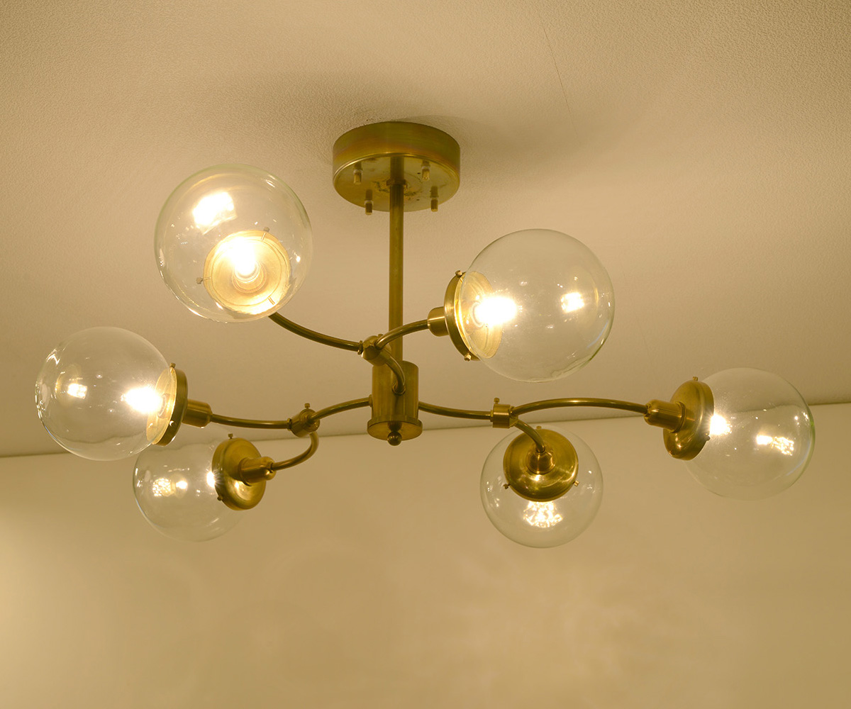 インダストリアルライト 真鍮生地6灯シーリングライト SSL600MHSGC クリアガラス