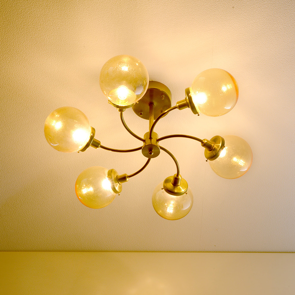 インダストリアルライト 真鍮生地6灯シーリングライト SSL666MHSGA アンバー色ガラス