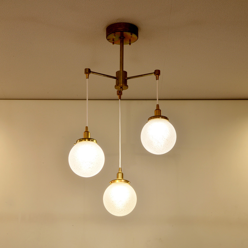 インダストリアルライト 真鍮生地3灯ペンダントライト SSP103HGS スカボガラス