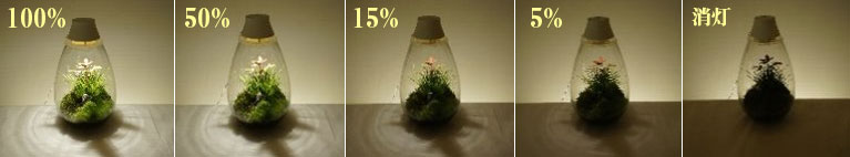 LEDの光と水だけでコケ植物を長く育てることができます。