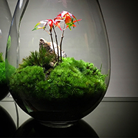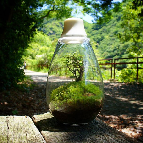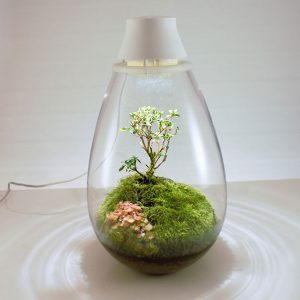 コケ植物とLED照明を組み合わせたテラリウムで、自然光があたらない場所でも、