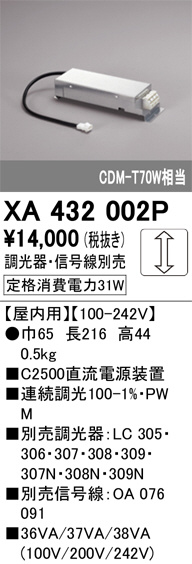 XA432002P オーデリック 別売電源 調光器・信号線別売 (代引き不可)
