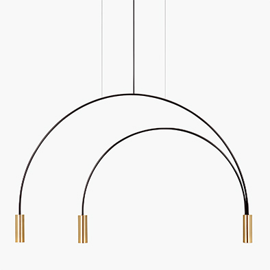 ヴォルタはアレクサンダー・カルダーのモビールを想起させるサスペンションライト。繊細で軽やかなアーチ状のデザインは、空間に圧迫感を感じさせずにテーブル全体をドラマチックに照らします。豊富なバリエーションによってさまざまな長さのテーブルに対応する最適なサイズをコーディネートできます。