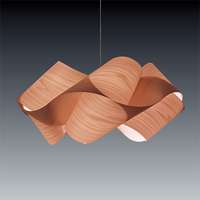 LZF(ルシフェル)は、木材をシート状に加工する特許技術Timberlite™により、木目の美しさを維持しつつ、しなやかで剛性のある素材を用いて照明を作り出しているブランドです。スワールは、平面のねじれから彫刻的な3次元フォームを作り出したペンダント照明で定番の木調の色以外にも、グレーやペールローズなど他では味わえないカラーで多様なシーンにマッチします。木材はFSC認証を取得しており、環境に配慮された素材です。