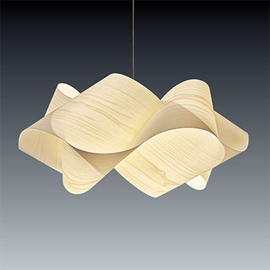 LZF(ルシフェル)は、木材をシート状に加工する特許技術Timberlite™により、木目の美しさを維持しつつ、しなやかで剛性のある素材を用いて照明を作り出しているブランドです。スワールは、平面のねじれから彫刻的な3次元フォームを作り出したペンダント照明で定番の木調の色以外にも、グレーやペールローズなど他では味わえないカラーで多様なシーンにマッチします。木材はFSC認証を取得しており、環境に配慮された素材です。