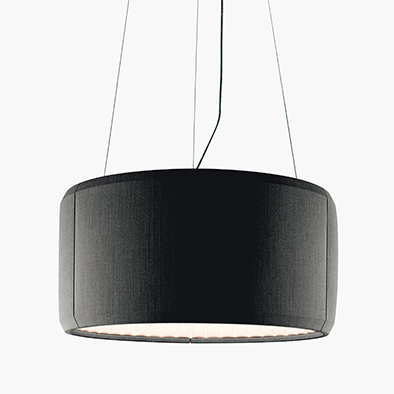 シレンツィオは、今日欧州で注目されている、上質な光と吸音効果両方にこだわった大型のサスペンション照明です。家具や空間に合わせやすいよう、クヴァドラの人気ファブリック「Remix」を採用しています。レストランやロビーなど、音環境にも工夫が求められる場面に最適です。