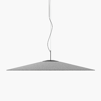 水平に大きく広がった円錐形が大胆で洗練された印象を生み出すコイネ。最大の特徴はLED光源に組み込まれた特殊なレンズにあります。レンズを透過したクリアな光は、下面のテーブルを非常に広い範囲で照らすだけで無く、目に眩しくないように設計された、新しい光源による革新的なペンダント照明です。リサイクル素材のフェルトセードが残響音を軽減し、室内の音環境改善効果が期待できます。