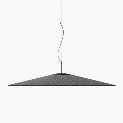 水平に大きく広がった円錐形が大胆で洗練された印象を生み出すコイネ。最大の特徴はLED光源に組み込まれた特殊なレンズにあります。レンズを透過したクリアな光は、下面のテーブルを非常に広い範囲で照らすだけで無く、目に眩しくないように設計された、新しい光源による革新的なペンダント照明です。リサイクル素材のフェルトセードが残響音を軽減し、室内の音環境改善効果が期待できます。