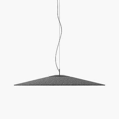 水平に大きく広がった円錐形が大胆で洗練された印象を生み出すコイネ。最大の特徴はLED光源に組み込まれた特殊なレンズにあります。レンズを透過したクリアな光は、下面のテーブルを非常に広い範囲で照らすだけで無く、目に眩しくないように設計された、新しい光源による革新的なペンダント照明です。リサイクル素材のフェルトセードが残響音を軽減し、室内の音環境改善効果が期待できます。