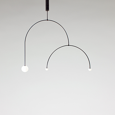 アレクサンダー・カルダーによる動く彫刻=モビールからインスパイアされた、マイケル・アナスタシアデスの代表作とも呼べる照明。連結部が自由にそして繊細に可動・回転し、空間の中で絶えず特有の表情が変化する様はまさに動く照明アート。ロンドンのスタジオでハンドメイドにより作られます。