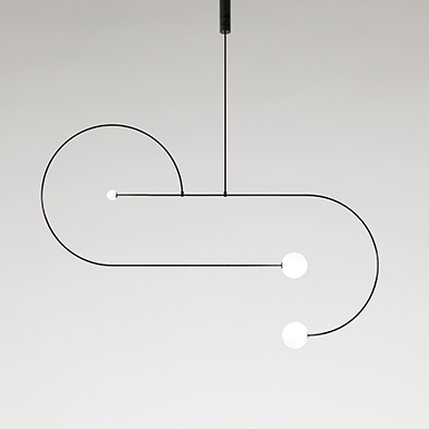 アレクサンダー・カルダーによる動く彫刻=モビールからインスパイアされた、マイケル・アナスタシアデスの代表作とも呼べる照明。連結部が自由にそして繊細に可動・回転し、空間の中で絶えず特有の表情が変化する様はまさに動く照明アート。ロンドンのスタジオでハンドメイドにより作られます。
