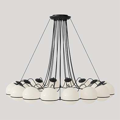 照明デザイン史に名を刻む、伝統的なイタリアのデザイナー、ジノ・サルファッティによる「Le Sfere」シリーズ。イタリア語で球体を意味するこのシリーズはシンプルでありながらエレガントな魅力を持つ作品です。1959年に発表された1灯のブラケットから始まり、以降住宅から商業施設まで多くのプロジェクトに採用されてきました。イタリア・トリノの「レージョ劇場」もその一つです。2018年、孫にあたるアレッサンドロ・サルファッティにより復刻されました。