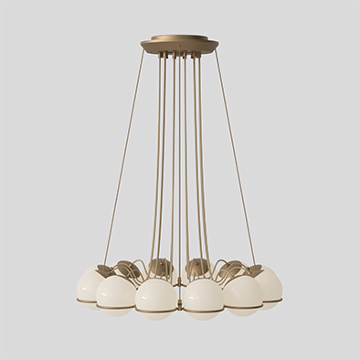 照明デザイン史に名を刻む、伝統的なイタリアのデザイナー、ジノ・サルファッティによる「Le Sfere」シリーズ。イタリア語で球体を意味するこのシリーズはシンプルでありながらエレガントな魅力を持つ作品です。1959年に発表された1灯のブラケットから始まり、以降住宅から商業施設まで多くのプロジェクトに採用されてきました。イタリア・トリノの「レージョ劇場」もその一つです。2018年、孫にあたるアレッサンドロ・サルファッティにより復刻されました。