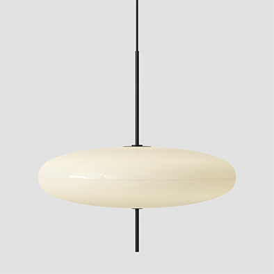 MODEL2065は照明の素材はガラスが主流であった1950年当時、アクリル系樹脂を初めて採用したペンダント照明です。デザイナーのジノ・サルファッティは、試作を重ね軽量化とデザイン性を向上させた結果、2つの乳白セードからなる楕円形ペンダント照明を誕生させました。孫にあたるアレッサンドロ・サルファッティによる復刻モデルでは、100%リサイクル可能なPMMA材を採用しています。